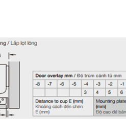 cao +2 mm (qua đế bản lề), điều chỉnh chiều sâu ±2 mm