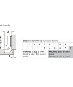 | Chiều sâu lỗ khoan: Chén bản lề 12 mm | |