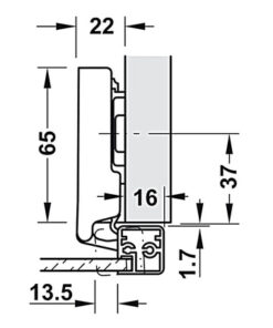Bản lề Hafele Metalla SM 110° cho cửa khung nhôm, đóng giảm chấn – Lắp trùm ngoài