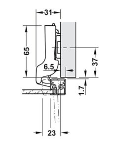 Bản lề Hafele Metalla SM 110° cho cửa khung nhôm, đóng giảm chấn – Lắp trùm nửa