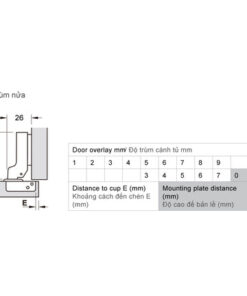 | Chiều sâu lỗ khoan: Chén bản lề 12 mm | |