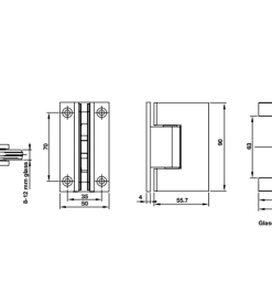 - Trọng lượng cửa tối đa: 45kg/2 bản lề(kẹp kính)