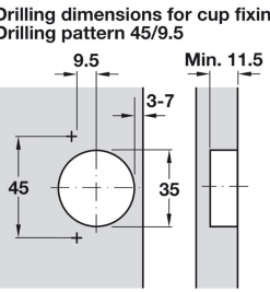 - Chiều sâu lỗ khoan: Chén bản lề 12 mm