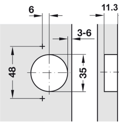 - Chiều sâu lỗ khoan: Chén bản lề 12 mm