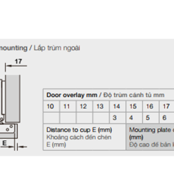 cao +2 mm (qua đế bản lề), điều chỉnh chiều sâu ±2 mm - Mô tả:bản lề trùm ngoài