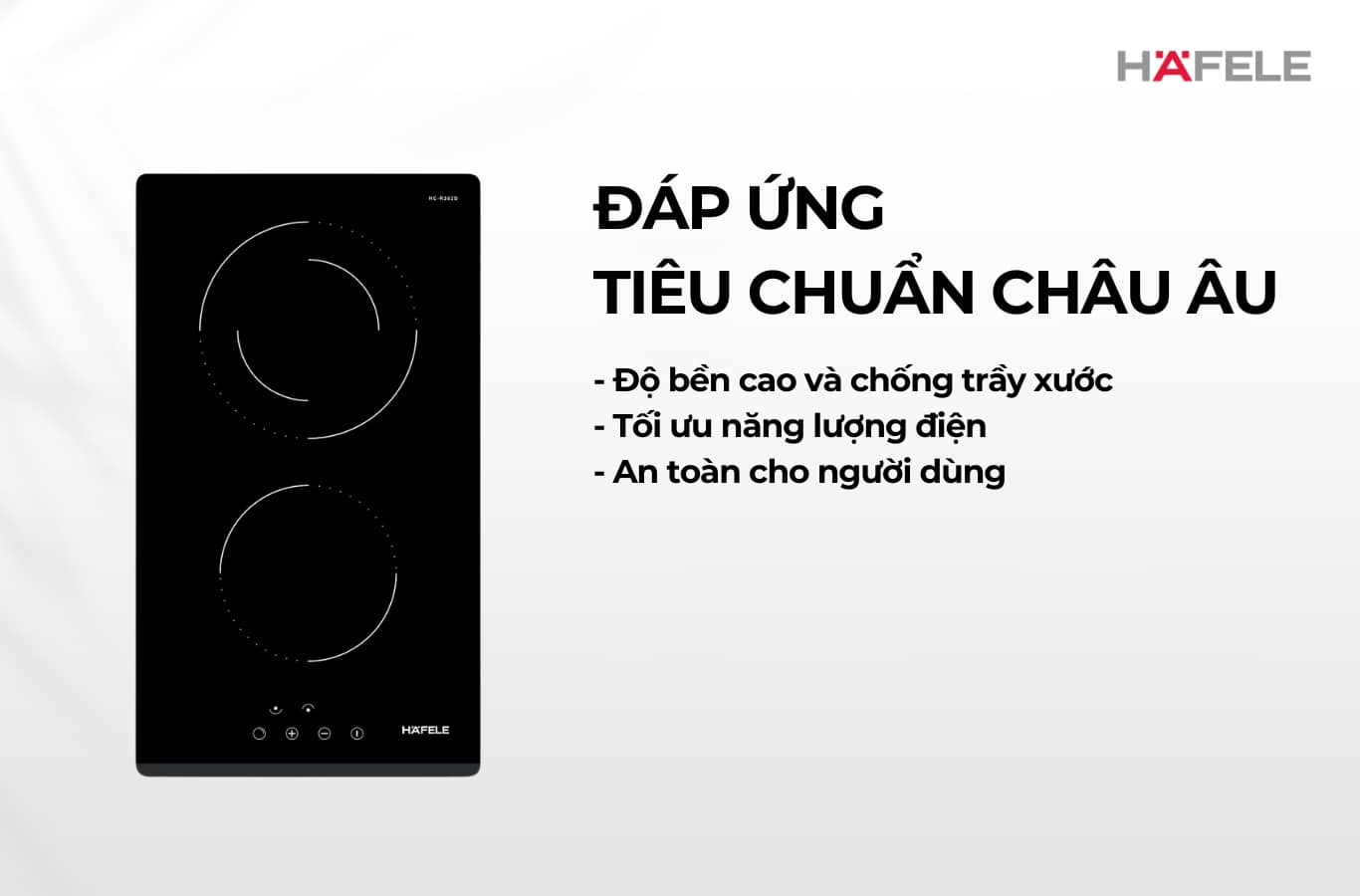 Các tiêu chuẩn Châu Âu bao gồm các yêu cầu khắt khe về khả năng tiêu thụ năng lượng, an toàn điện, độ bền, giúp bảo vệ người dùng tránh khỏi các nguy cơ có thể xảy ra trong quá trình sử dụng. Bếp điện Hafele HC-R302D đáp ứng các yêu cầu này, mang lại cho người dùng sự an tâm tuyệt đối về chất lượng và độ bền.
