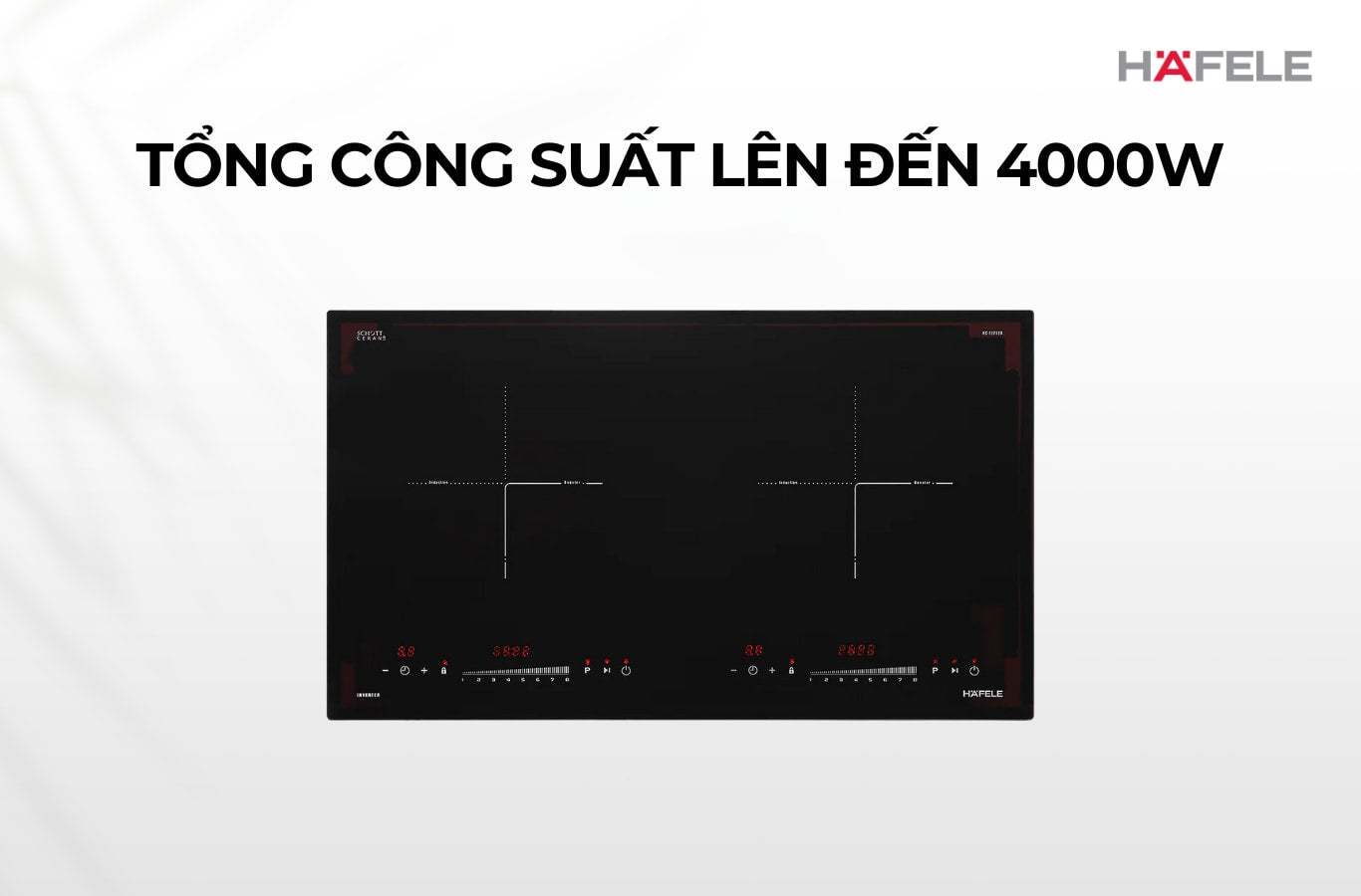 Đặc biệt, sản phẩm có mặt bếp làm từ gốm thủy tinh Schott Ceran của Đức, nổi tiếng với khả năng chịu lực và chịu nhiệt tốt, đồng thời dễ dàng vệ sinh sau khi sử dụng. Công suất tổng của bếp là 4000W, trong đó công suất từng vùng tối đa là 2200W, giúp quá trình nấu ăn được nhanh chóng và hiệu quả.