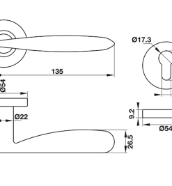 Trọn bộ gồm:2 tay nắm gạt,1 bộ nắp chụp tay nắm,1 bộ nắp chụp ruột khóa PC,1 bộ vít