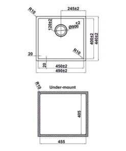 | Kích thước chậu: 490D x 440R mm | |