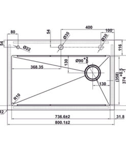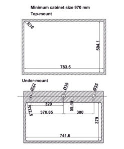 Kích thước cắt đá: Lắp âm: 725D x 405R mm