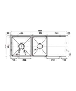 | Kích thước cắt đá: + Lắp nổi: 1134D x 424R mm + Lắp âm: 1110D x 400R mm |