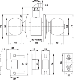 - Khoảng cách từ cạnh cửa đến tâm lỗ ruột khóa:60mm