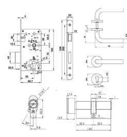 - Thân khóa:khoảng cách từ cạnh cửa đến tâm lỗ ruột khóa:55mm,C-C:72mm chốt chết 1 vòng xoay cho cửa vệ sinh