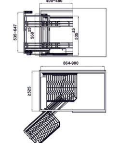 | Thiết kế hệ kéo liên hoàn đặc biệt để tận dụng tối đa không gian góc bếp |