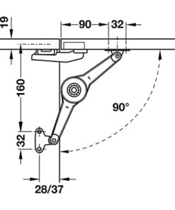 | Sử dụng kết hợp với bản lề âm 110° theo tiêu chuẩn có lò xo đóng tự động hoặc cơ chế đóng giảm chấn | |